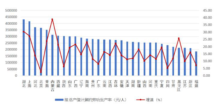 2021年上半年,各地區(qū)按建筑業(yè)總產(chǎn)值計(jì)算的勞動(dòng)生產(chǎn)率均保持增長(zhǎng)。勞動(dòng)生產(chǎn)率排序前三位的地區(qū)是湖北、上海、河北,分別為432475元/人、416370元/人、371176元/人。勞動(dòng)生產(chǎn)率增幅超過15%的是內(nèi)蒙古、湖北、上海、黑龍江、青海、海南、吉林、廣西、西藏、寧夏、山東、新疆、云南、浙江等14個(gè)地區(qū)(圖6)。