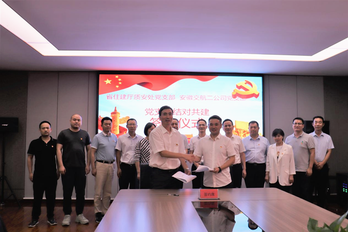 8月19日下午,安徽省住建廳工程質(zhì)量安全監(jiān)管處黨支部來安徽交航引江濟(jì)淮新時代文明實踐點開展“支部建在工地上”主題黨日活動,并與二公司黨支部簽訂結(jié)對共建協(xié)議。省住建廳工程質(zhì)量安全監(jiān)管處處長何以文、副處長陳鐘,三級調(diào)研員丁金穎、四級調(diào)研員董理論;公司黨委書記、董事長方申柱,黨委副書記、工會主席黃國平,黨委委員、副總經(jīng)理張瓊等領(lǐng)導(dǎo)參加活動并見證簽約。
