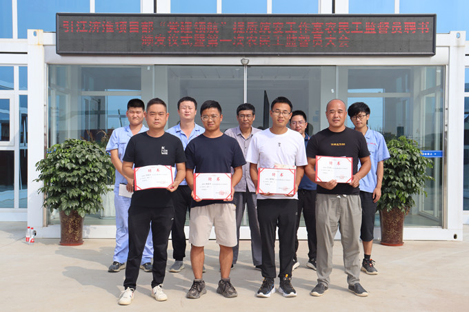 會上,項目“黨建領(lǐng)航”提質(zhì)筑安工作組成員徐鵬同志圍繞農(nóng)民工監(jiān)督員的意義、農(nóng)民工監(jiān)督員職責以及在日常工作中如何監(jiān)督、農(nóng)民工監(jiān)督員保障機制等方面,開展了對農(nóng)民工監(jiān)督員的履職培訓(xùn)。本次參會的4名農(nóng)民工監(jiān)督員是經(jīng)引江濟淮項目“黨建領(lǐng)航”提質(zhì)筑安工作室公開選聘,采取施工班組推薦和個人自愿報名,從22名報名者擇優(yōu)選聘報公司“黨建領(lǐng)航”提質(zhì)筑安辦公室審核、公示確定。