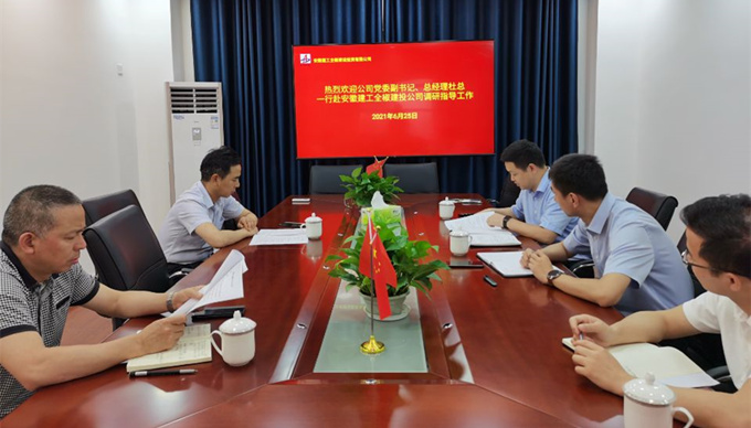 6月25日上午,公司黨委副書記、總經(jīng)理杜海峰到安徽建工全椒建投公司調(diào)研指導工作并舉行座談會。公司生產(chǎn)總調(diào)度、工程管理部主任周和友,全椒建投公司總經(jīng)理徐華磊等參加調(diào)研。