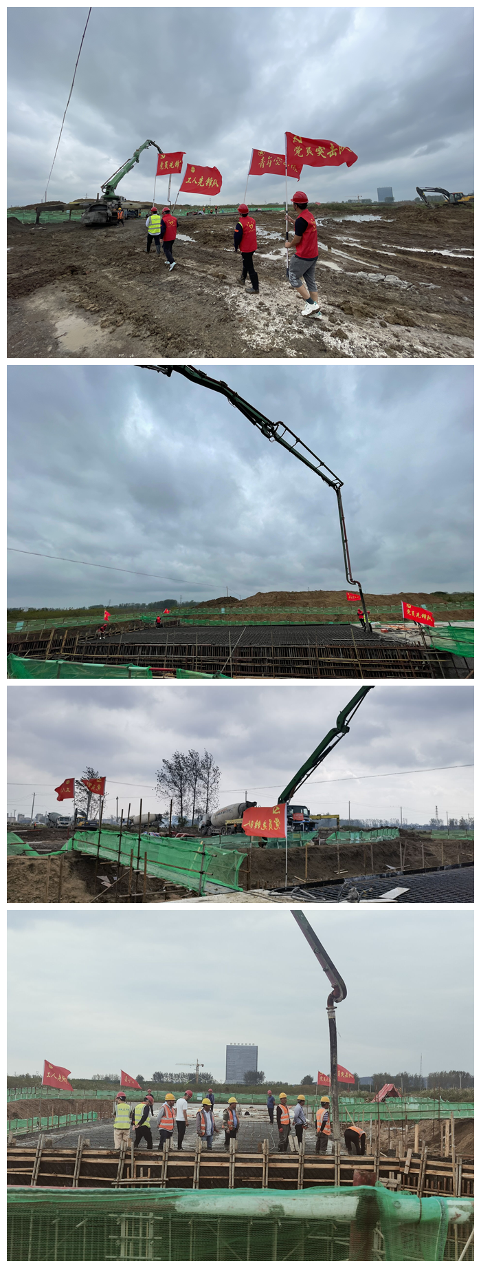 本次箱涵封頂,澆筑混凝土較多,且今年以來,項目接連遭遇征地拆遷、雨水較多等困難。項目部始終圍繞“學黨史、保安康、搶工期、爭一流”的勞動競賽主題,秉持“工期就是效益”的理念,充分發(fā)揮黨員先鋒引領(lǐng)作用,通過組建青年突擊隊等措施,號召黨員青年沖鋒在前,與工人同吃苦、共奮斗,確保項目工作如期完成。最終,通過10個小時的努力施工,充分發(fā)揮青年突擊隊、黨員突擊隊作用,箱涵封頂混凝土澆筑工作圓滿完成。