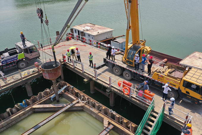 5月21日,利辛縣S247馬胡橋項(xiàng)目完成4#主墩鋼圍堰封底,標(biāo)志著馬胡橋主橋建設(shè)將由水下轉(zhuǎn)向水上施工,下一步工作重點(diǎn)轉(zhuǎn)向承臺(tái)和門型實(shí)體墩身施工。