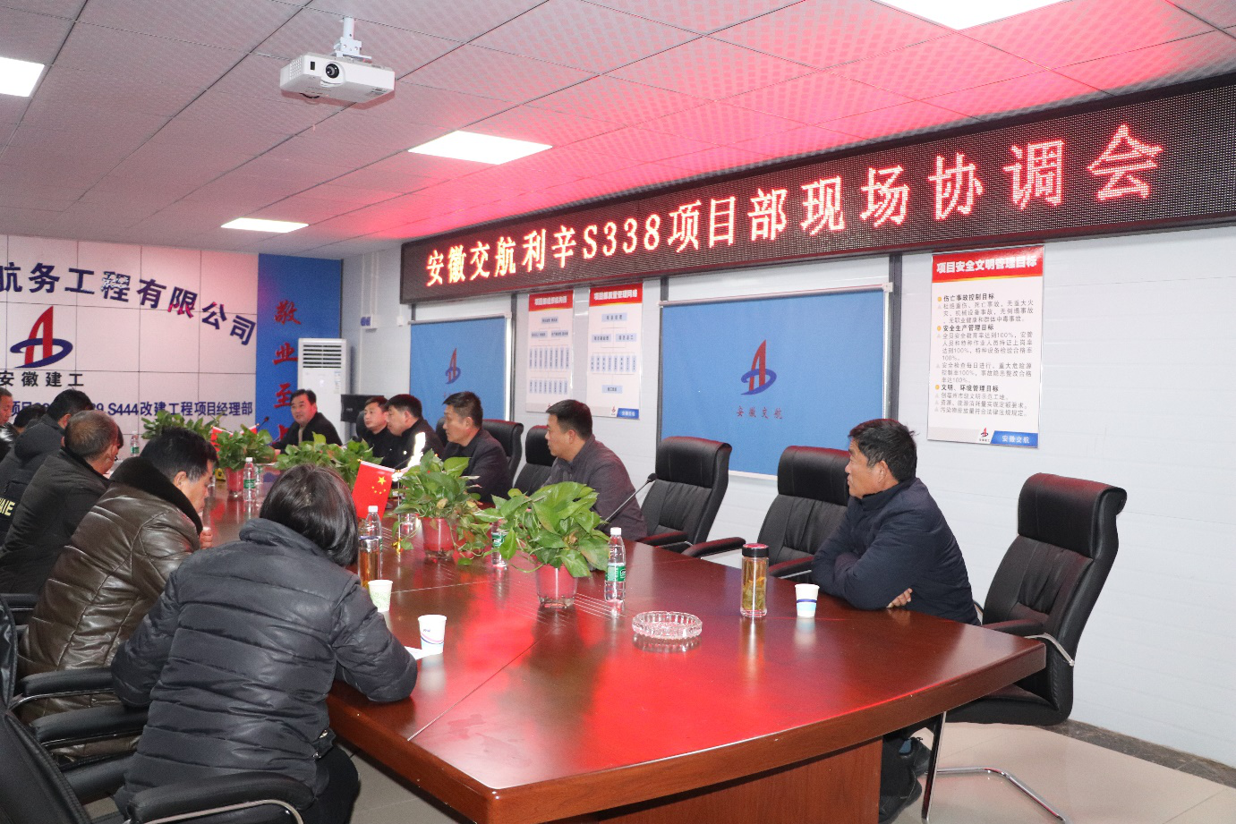 2019年12月6日下午,S338利辛段改建工程二期現(xiàn)場協(xié)調會在S338項目部召開,利辛縣交通局業(yè)主代表江文顯、評估公司李總、江集鎮(zhèn)朱華東副書記及沿線各村書記、利辛S338項目部負責人參會。