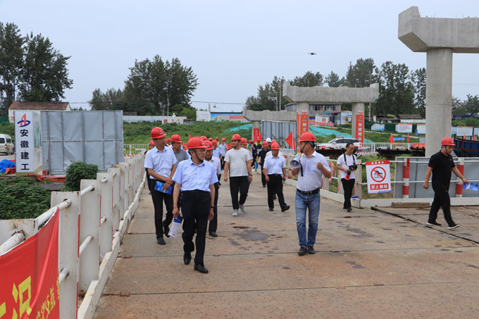 孫善豹一行直奔利辛縣馬胡橋施工現(xiàn)場,認(rèn)真聽取了馬胡橋項目負(fù)責(zé)人關(guān)于項目概況、目前施工進度以及最近高溫天氣下采取的防暑降溫措施的工作匯報,并對項目部加快進度保障措施以及在采取避開高溫時段施工的同時給工人發(fā)放防暑降溫物品的做法給予了肯定。孫善豹指出,在加快施工進度的同時要保障在高溫天氣下作業(yè)安全。