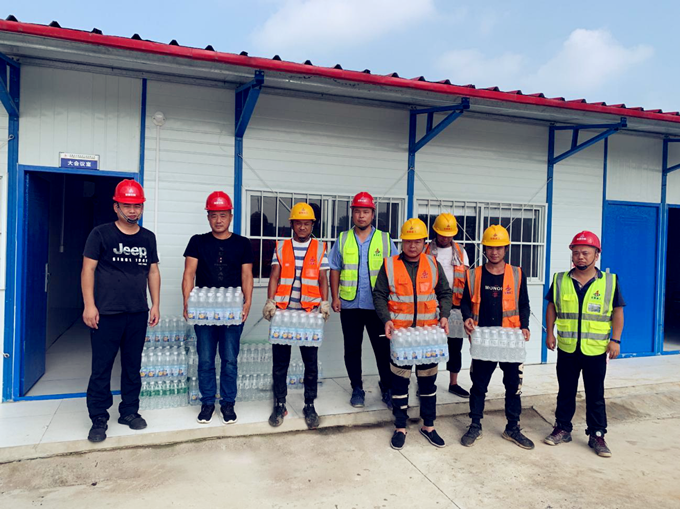 高溫期間,利辛縣S247馬胡橋項(xiàng)目部提前備足綠豆湯、礦泉水、藿香正氣水、龍虎人丹以及風(fēng)油精等防暑降溫用品,并安排專人定期組織發(fā)放。同時,結(jié)合實(shí)際情況,靈活調(diào)整作業(yè)時間,將施工作業(yè)時間段按照工籌合理調(diào)配,確保工期節(jié)點(diǎn)。為營造舒適的休息空間,提升職工精神面貌,項(xiàng)目部按需在現(xiàn)場設(shè)置納涼房并在職工宿舍配備空調(diào)風(fēng)扇等降溫設(shè)施,為項(xiàng)目建設(shè)提前做好高溫施工作業(yè)籌備工作。