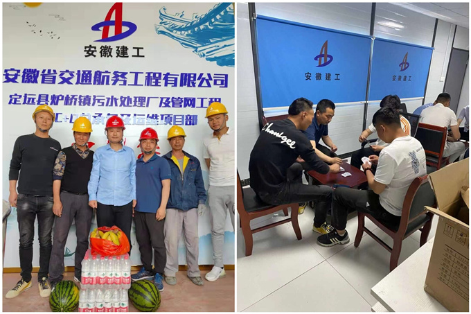 日前,定遠(yuǎn)縣爐橋鎮(zhèn)污水處理廠及管網(wǎng)工程項目部,給“五一”期間頭頂烈日、堅守崗位的項目職工及民工兄弟送去慰問品,對他們的堅持和奉獻(xiàn)表示感謝,并組織開展摜蛋比賽。