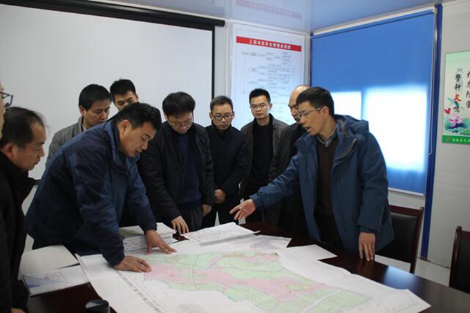 王總一行深入一期、二期施工現(xiàn)場(chǎng),查看了一期工程施工情況和二期工程征地拆遷進(jìn)展情況,在審閱了施工圖紙后,認(rèn)真聽取了項(xiàng)目公司及項(xiàng)目部對(duì)當(dāng)前工程施工進(jìn)展情況、融資及支付情況、下一步施工安排的匯報(bào),詳細(xì)了解了項(xiàng)目施工中存在的困難和問題。
