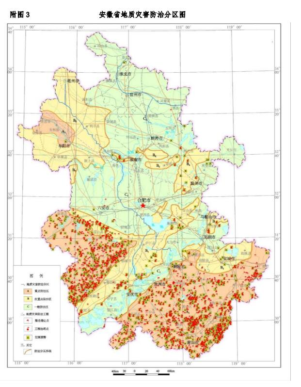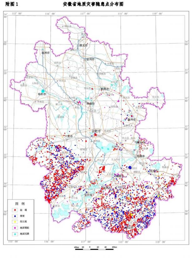 《規(guī)劃》適用范圍為安徽省行政區(qū)域內(nèi)自然因素或者人為活動引發(fā)的危害人民生命和財產(chǎn)安全的山體崩塌、滑坡、泥石流、地面塌陷、地裂縫、地面沉降等與地質(zhì)作用有關(guān)的災(zāi)害。