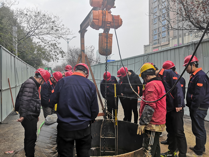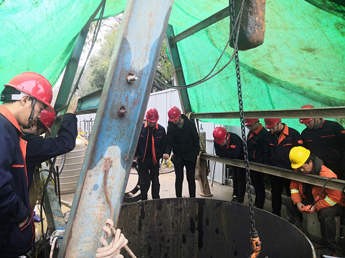 參觀學(xué)習(xí)中,雨污分流項(xiàng)目有關(guān)人員介紹了項(xiàng)目施工過(guò)程中的經(jīng)驗(yàn),并與滁州項(xiàng)目人員就頂管工藝施工等工作進(jìn)行了深入探討。蔚來(lái)會(huì)、陳浩通過(guò)實(shí)地講解頂進(jìn)設(shè)備安裝、掘進(jìn)機(jī)井內(nèi)就位穿墻等工序,讓滁州項(xiàng)目人員進(jìn)一步了解了頂管工藝的施工流程。