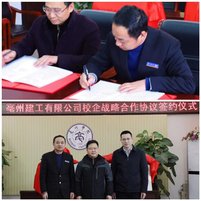 1月6日,安徽交航參股企業(yè)亳州建工與亳州學(xué)院校企戰(zhàn)略合作簽約儀式,在亳州學(xué)院行政教學(xué)樓舉行。亳州學(xué)院黨委委員、副校長俞浩,亳州建工黨委書記、董事長張國玉分別為“亳州學(xué)院實(shí)習(xí)實(shí)訓(xùn)基地”和“亳州市人居環(huán)境工程技術(shù)研究中心”揭牌。亳州學(xué)院教務(wù)處處長江浩,亳州建工黨委副書記、總經(jīng)理劉軍分別代表雙方簽訂戰(zhàn)略合作協(xié)議。亳州學(xué)院校辦公室主任徐玉松主持簽約儀式。