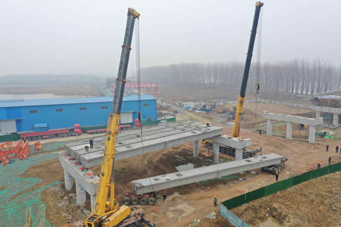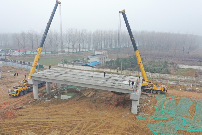 1月10日上午,利辛縣西淝河邵渡口大橋引橋箱梁架設(shè)施工正式開(kāi)始,隨著橋北第一片箱梁的準(zhǔn)確落位,標(biāo)志著邵渡口大橋項(xiàng)目進(jìn)入新的施工階段。