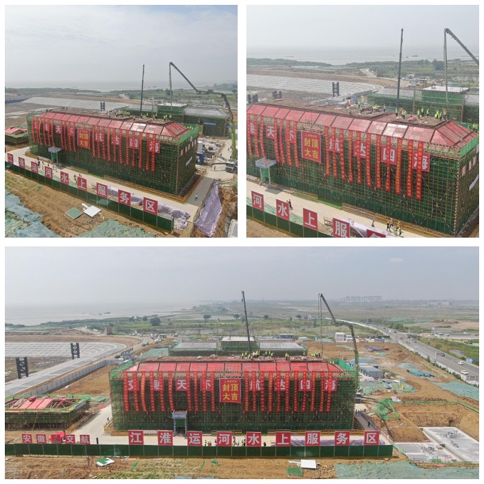 6月2日上午9:58,隨著派河口服務區(qū)工程生活服務中心迎來封頂,正式宣告了引江濟淮項目派河口服務區(qū)工程房建主體結(jié)構(gòu)實現(xiàn)全部封頂目標,比原定計劃工期提前28天完成業(yè)主下達的節(jié)點目標,項目建設取得階段性勝利。
