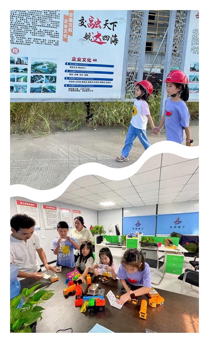 本次活動(dòng)以“交流話夢(mèng)想”形式拉開序幕,小朋友們收到了項(xiàng)目部精心準(zhǔn)備的“小候鳥”學(xué)習(xí)用品禮包,在自我介紹中暢享未來許下“童心愿望”,在益智活動(dòng)中動(dòng)手拼裝工程車輛模型,享受親情溫暖、收獲友情歡樂?;顒?dòng)不僅讓孩子們玩得盡興,更將寓教于樂進(jìn)行到底。在父母的帶領(lǐng)下,孩子們迎來工地“初體驗(yàn)”,孩子們帶上安全帽,參觀項(xiàng)目參觀了辦公區(qū)、生活區(qū)以及施工現(xiàn)場(chǎng),學(xué)習(xí)項(xiàng)目建設(shè)的知識(shí)和安全常識(shí),陪爸爸媽媽吃一頓工作餐,“零距離”體驗(yàn)父母的日常工作、生活的環(huán)境,體會(huì)父母工作的艱辛和不易。