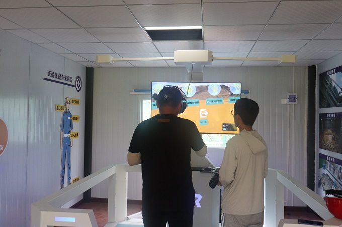 活動中,由專業(yè)人員進行演示講解,指導工人們操作VR設備,體驗人員戴上VR眼鏡,操作手柄進入包括高處墜落、機械傷害、觸電傷害、物體打擊等常見安全事故體驗場景,對安全事故進行全過程“真實”再現(xiàn),通過視覺、聽覺,沉浸式體驗危險發(fā)生過程和后果,切身感知安全隱患的危險。