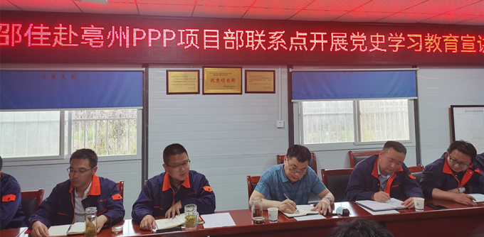 5月13日,公司黨委委員、副總經(jīng)理邵佳赴亳州PPP項目黨支部聯(lián)系點開展黨史學習教育宣講,蒙城項目部分黨員、項目部全體人員參加宣講會。