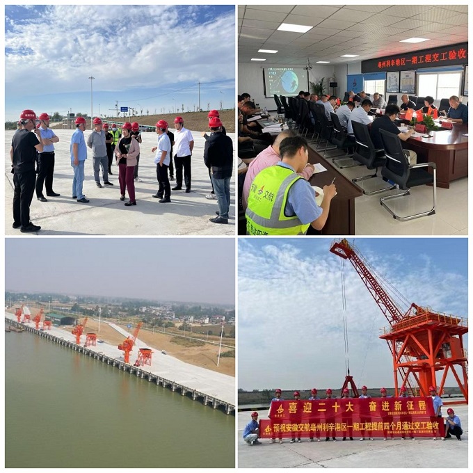 2022年9月29日,安徽交航公司亳州利辛港區(qū)一期工程項目順利通過交工驗收,比計劃工期提前4個月交工,即將正式投入運營。該工程建設(shè)12個500~1000噸級泊位,從上游至下游依次布置11個散貨(礦建材料)進口泊位和1個散貨(糧食)出口泊位,碼頭年設(shè)計吞吐量650萬噸。