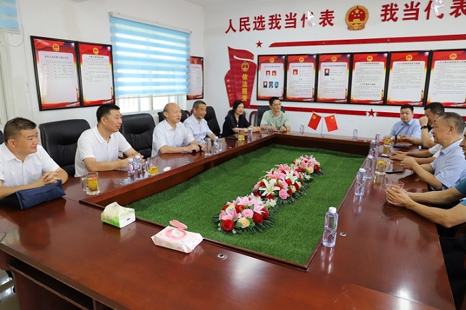 在太平村,趙時運頂著高溫來到村委會,向以丁玉新為首的鄉(xiāng)村振興工作隊同志們表示親切慰問,并受到了全椒縣人大常委會主任金義平、縣委組織部部長李加兵、二郎口鎮(zhèn)黨委書記董彪等一行的熱烈歡迎。在隨后召開的座談會上,雙方重點圍繞鄉(xiāng)村集體產(chǎn)業(yè)發(fā)展、幫扶干部履職等內(nèi)容深入交換了意見。趙時運指出,建工集團(tuán)定點幫扶太平村既是貫徹落實省委省政府部署,也是深入履行社會責(zé)任的具體體現(xiàn)。下一步,要繼續(xù)發(fā)揮企業(yè)資源優(yōu)勢,重點強化產(chǎn)業(yè)“造血”幫扶,全力圍繞金絲黃菊種植加工這一當(dāng)家產(chǎn)業(yè)做好深入文章,科學(xué)謀劃產(chǎn)業(yè)發(fā)展路徑,大膽創(chuàng)新營銷模式,持續(xù)拓展銷售渠道,保障發(fā)揮集體產(chǎn)業(yè)經(jīng)濟帶動作用。他同時勉勵駐村幫扶干部繼續(xù)扎根一線,積極響應(yīng)縣、鎮(zhèn)兩級黨委、政府領(lǐng)導(dǎo),再接再厲、不懈奮斗,爭取實現(xiàn)幫扶村“一年一個樣,三年大變樣”。