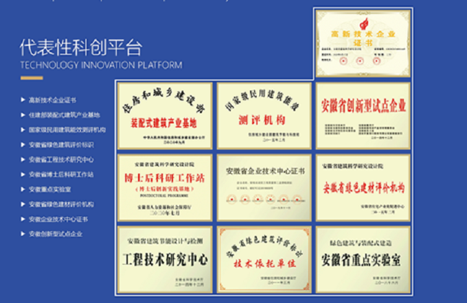 產(chǎn)學(xué)研合作和科技創(chuàng)新平臺數(shù)量實現(xiàn)新突破。加強與高校之間的產(chǎn)學(xué)研合作,建立產(chǎn)學(xué)研深度融合的技術(shù)創(chuàng)新體系,合作模式不斷創(chuàng)新。先后與合肥工業(yè)大學(xué)、安徽建筑大學(xué)、安徽理工大學(xué)等單位建立產(chǎn)學(xué)研合作平臺,搭建了安徽省產(chǎn)學(xué)研聯(lián)合培養(yǎng)研究生示范基地。以項目研究為紐帶,大力推進(jìn)科技創(chuàng)新平臺建設(shè),激發(fā)創(chuàng)新活力。先后建設(shè)了以中國合格評定國家認(rèn)可委員會認(rèn)可實驗室(CNAS認(rèn)可)、國家級高新技術(shù)企業(yè)、安徽省綠色建材評價機構(gòu)、綠色建筑與裝配式建造安徽省重點實驗室、安徽省企業(yè)技術(shù)中心、安徽省博士后科研工作站為代表的11個科研創(chuàng)新平臺。截至“十三五”末,安徽建科共有各類科技創(chuàng)新平臺17個。