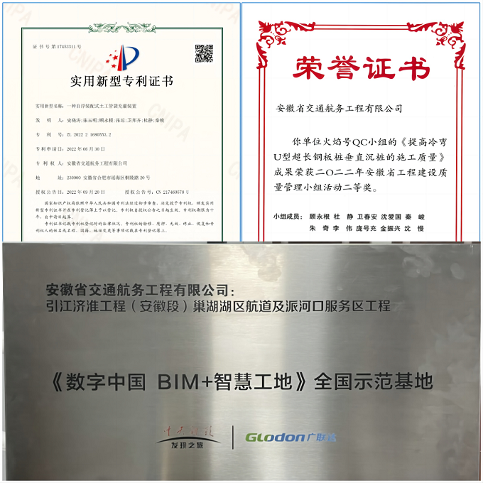 堅(jiān)持科技創(chuàng)新,助推工程建設(shè)。黨的二十大強(qiáng)調(diào),科技是第一生產(chǎn)力、創(chuàng)新是第一動(dòng)力。引江濟(jì)淮項(xiàng)目始終重視用科技推動(dòng)工程建設(shè),積極建立技術(shù)管理體系與制度,工程前期通過(guò)圖紙會(huì)審、圖紙預(yù)審等對(duì)施工圖紙進(jìn)行詳細(xì)解讀,并根據(jù)施工策劃編制施工組織設(shè)計(jì)及施工方案編制計(jì)劃,施工過(guò)程中,嚴(yán)格按照施工方案編制計(jì)劃積極進(jìn)行方案編制,并積極進(jìn)行圖紙交底及施工方案的交底,在項(xiàng)目施工中,積極采用新技術(shù)為工程質(zhì)量“保駕護(hù)航”,并積極落實(shí)科技創(chuàng)新工作,項(xiàng)目共立項(xiàng)科研課題15項(xiàng),目前進(jìn)行科研經(jīng)費(fèi)歸集1800萬(wàn),項(xiàng)目部榮獲“《數(shù)字中國(guó)BIM+智慧工地》全國(guó)示范基地”稱號(hào),并獲得實(shí)用新型專利2項(xiàng),企業(yè)級(jí)工法5項(xiàng)。