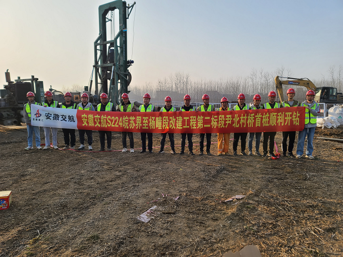 S224皖蘇界至楊疃段改建工程,路線全長47.224公里。安徽交航承建的二標(biāo)段樁號K23+000-K47+224,全長24.224公里。而尹北村橋是本標(biāo)段10座橋梁中跨度最大的橋,全長527.5m。自進場以來,項目全體員工始終秉承“誠信為本,敬業(yè)至上”的企業(yè)核心價值觀,腳踏實地、穩(wěn)扎穩(wěn)打、步步為營,此次首根樁基的順利施工開鉆,極大地鼓舞了項目全體參建人員的士氣,為項目全線按時完工和順利通車提供了可靠的保障。