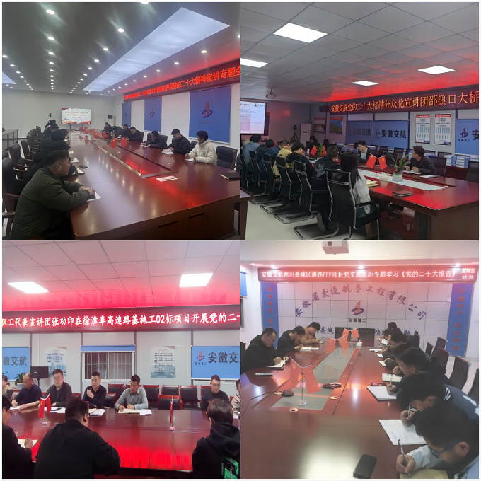 近日,安徽交航公司職工代表宣講團(tuán)赴基層一線開(kāi)展了黨的二十大精神專題宣講,靈璧S224項(xiàng)目、徐淮阜高速項(xiàng)目、淅川PPP項(xiàng)目、利辛邵渡口大橋項(xiàng)目等100余人參加宣講。