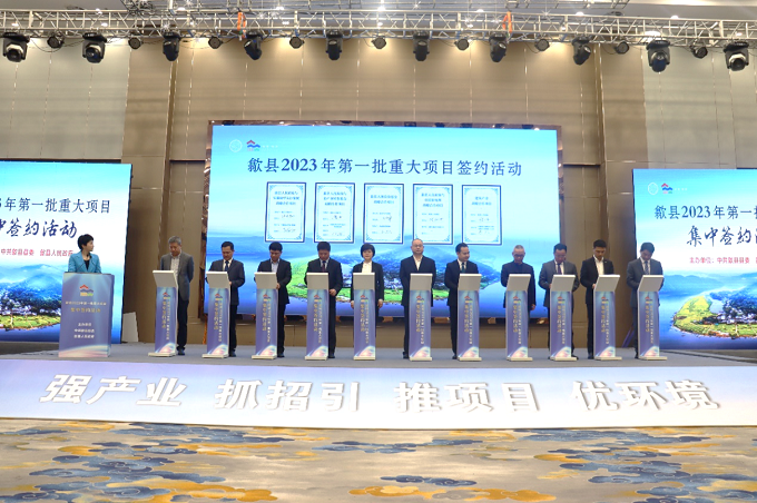 2023年4月9日上午9點,歙縣舉行2023年第一批重大項目集中簽約活動,縣委書記汪凱,縣委副書記、縣長王奇勇,縣人大常委會主任梅代軍,縣政協(xié)主席吳志良,縣委副書記吳志平等縣四套班子領導出席簽約儀式。