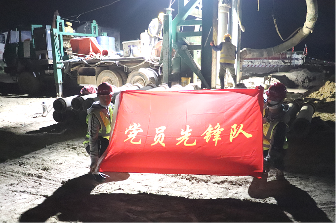 為加快推進(jìn)工程進(jìn)度,項(xiàng)目部吹響了2023年施工沖鋒號(hào)角,先后成立黨員先鋒隊(duì)、青年突擊隊(duì),項(xiàng)目領(lǐng)導(dǎo)班子成員帶頭夜間輪流值班,全體項(xiàng)目晝夜苦干實(shí)干,目標(biāo)堅(jiān)定、迎難而上。截至3月底,項(xiàng)目已累計(jì)完成樁基施工117根、路基填筑6500方、水泥攪拌樁施工2090米、便道填土4876米、擋墻施工1300方、鋼筋籠143套。