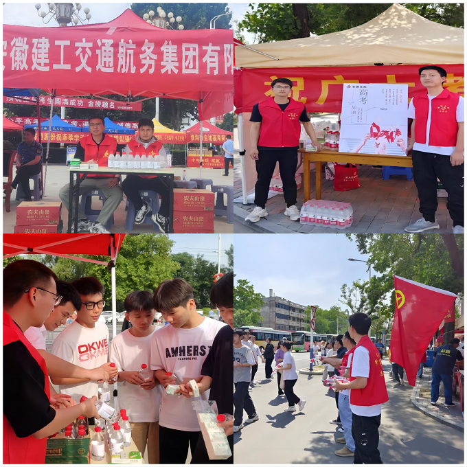 高考期間,建工交航的志愿者們在考場附近設立了愛志愿服務站,為考生免費提供飲水、防暑藥品、考試用品、口罩、紙巾等物資,為考生提供暖心服務。