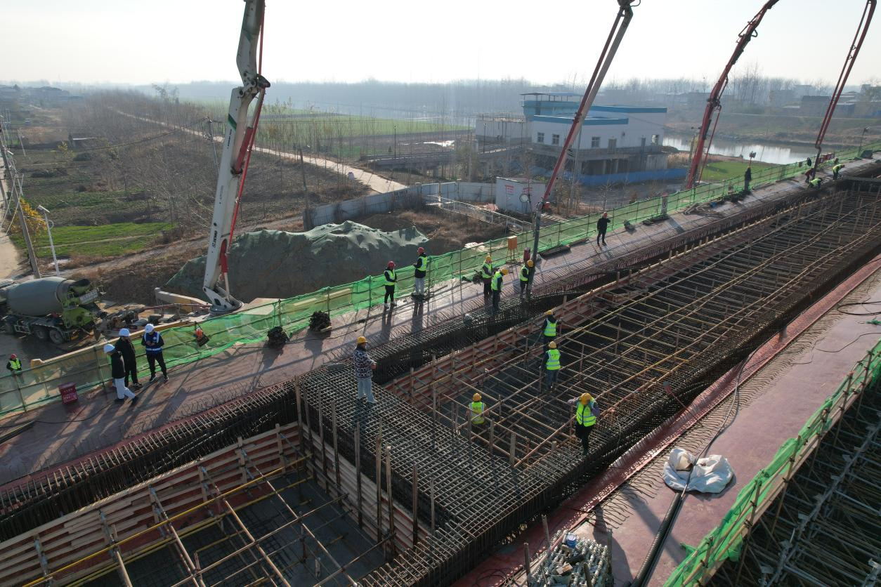 12月1日,S224皖蘇界至楊疃段改建工程第二標(biāo)段尹北大橋主橋首聯(lián)底板混凝土順利完成澆筑,標(biāo)志著項目進入施工新階段。