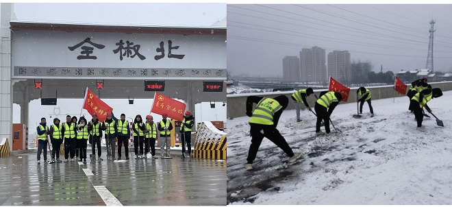 全椒建投成立“青年臨時(shí)突擊隊(duì)”清掃全椒北互通立交項(xiàng)目上跨合寧高速橋面積雪。
