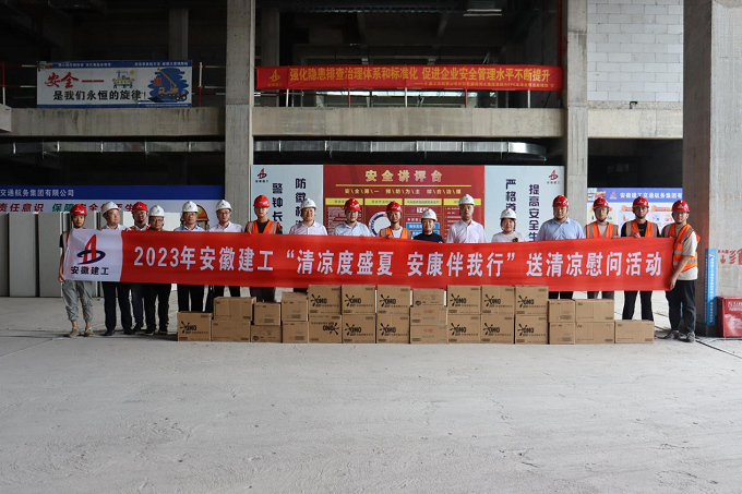 7月28日,建工控股工會(huì)副主席、建工股份副總經(jīng)理邢應(yīng)梅到建工交航黃山世紀(jì)園總部經(jīng)濟(jì)大廈項(xiàng)目,開(kāi)展“清涼度盛夏,安康伴我行”送清涼慰問(wèn)活動(dòng)并驗(yàn)收“工人先鋒號(hào)”。公司黨委委員、副總經(jīng)理王黎明參加活動(dòng)。