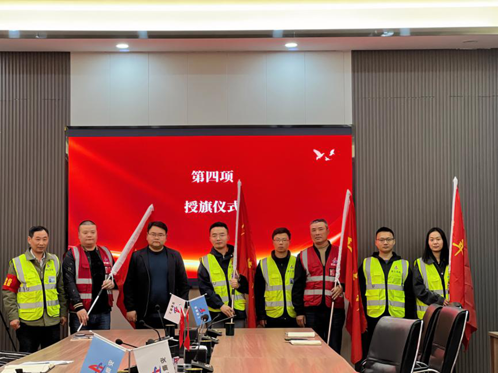 隨后,現(xiàn)場進(jìn)行了“三號聯(lián)創(chuàng)”授旗儀式,黨員代表、青年代表、工人代表分別被授予“黨員先鋒隊(duì)”“青年突擊隊(duì)”“工人先鋒號”旗幟,鼓舞廣大職工以更加昂揚(yáng)的斗志、更加飽滿的熱情投入項(xiàng)目建設(shè),充分發(fā)揮黨員先鋒模范作用、工人主力軍作用和青年生力軍作用,切實(shí)把項(xiàng)目各項(xiàng)生產(chǎn)管理工作抓實(shí)抓細(xì)抓到位。