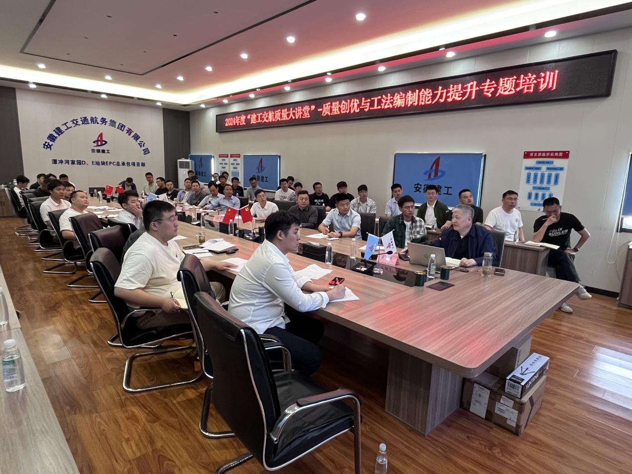 4月27日,公司在潭沖河家園項目部組織開展了2024年度質(zhì)量創(chuàng)優(yōu)與工法編制能力提升專題培訓(xùn)活動,副總經(jīng)理吳繼成出席活動并進行專題授課,所屬各子分公司技術(shù)質(zhì)量負責(zé)人、項目總工及工程技術(shù)人員共50余人參加。