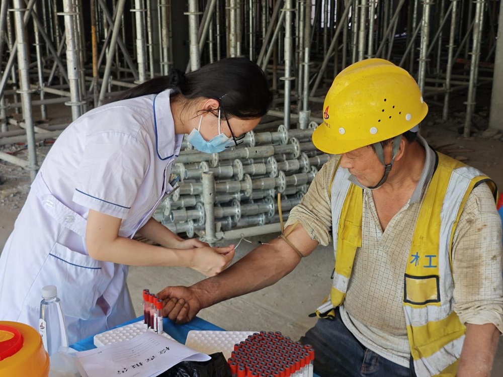 為落實安全生產工作要求,切實保障一線工人的身體健康,5月17日下午,商機廠租賃住房項目部開展了以“事情關愛農民工,健康體檢暖人心”為主題的體檢活動,邀請醫(yī)護人員走進工地,為現場工人進行一次全面、免費的健康檢查,用實際行動傳遞溫暖。