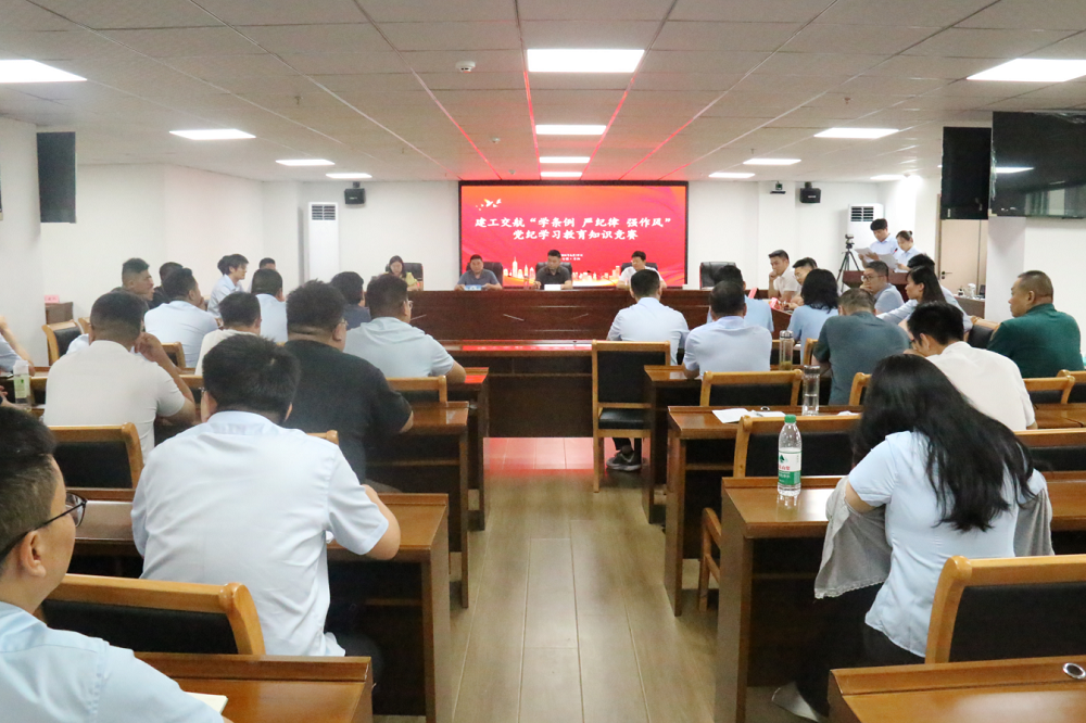 為深入推進(jìn)黨紀(jì)學(xué)習(xí)教育主題活動,教育引導(dǎo)黨員干部做到學(xué)紀(jì)、知紀(jì)、明紀(jì)、守紀(jì),以競賽形式檢驗(yàn)學(xué)習(xí)成果,6月19日,建工交航開展“學(xué)條例 嚴(yán)紀(jì)律 強(qiáng)作風(fēng)”黨紀(jì)學(xué)習(xí)教育知識競賽。公司黨委副書記、總經(jīng)理李登祥出席活動,黨委委員、副總經(jīng)理、工會主席王黎明致辭。公司機(jī)關(guān)黨總支書記、財務(wù)資產(chǎn)部部長李愛平、紀(jì)檢室負(fù)責(zé)人李衍、團(tuán)委書記李鳳祥及各代表隊(duì)領(lǐng)隊(duì)、隊(duì)員共計50余人參與此次活動。