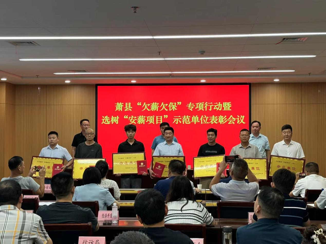 7月31日,蕭縣召開“欠薪欠?!睂m椥袆郁哌x樹“安薪項目”示范單位表彰會議,由安徽建工交通航務(wù)集團有限公司承建的S239蕭縣北至G310段改建工程02標(biāo)段(蕭楊路提升)項目施工項目榮獲表彰。