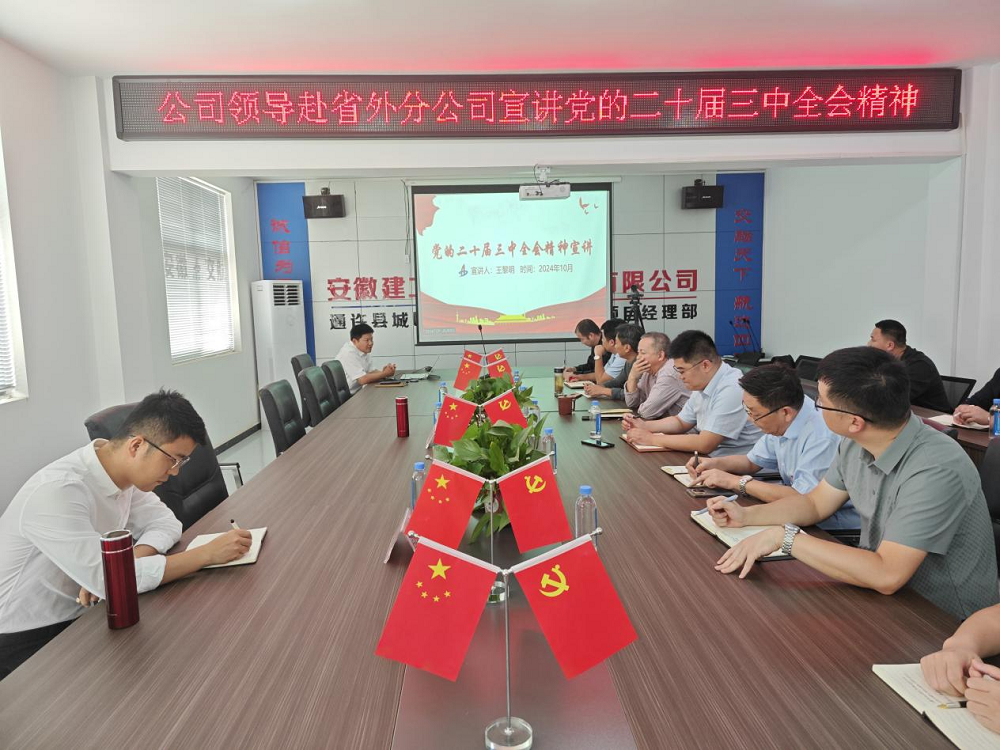 為深入學(xué)習(xí)黨的二十屆三中全會精神,營造奮進新征程的良好氛圍,確保讓黨的創(chuàng)新理論在基層生根發(fā)芽,10月11日下午,公司黨委委員、副總經(jīng)理、工會主席王黎明赴省外分公司開展黨的二十屆三中全會精神宣講報告會。