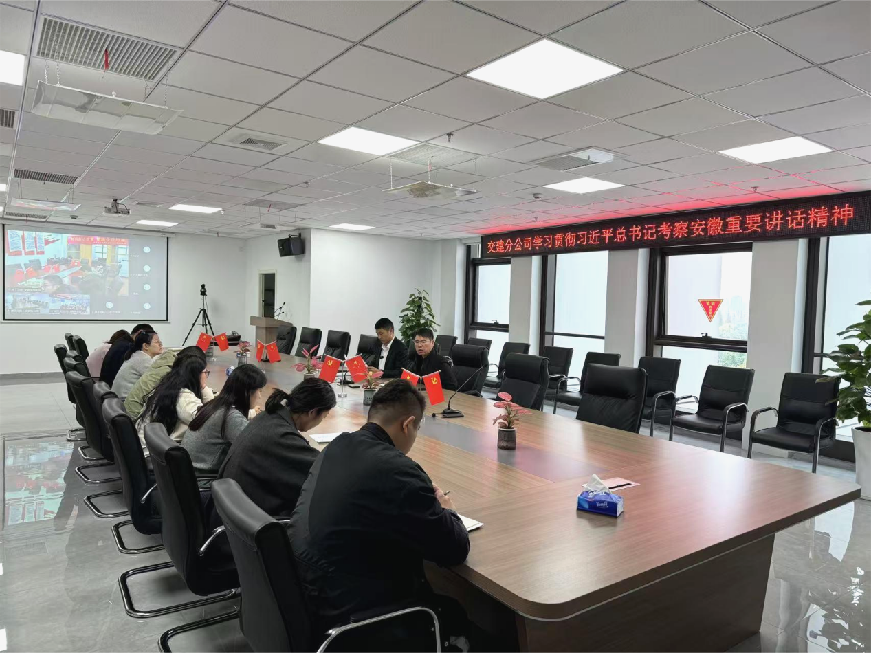 交建分公司黨支部舉行學習會議,專題學習研討習近平總書記考察安徽重要講話精神。