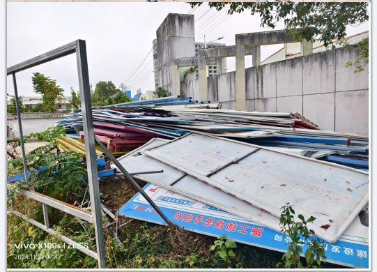 烏石換乘中心項(xiàng)目廢舊廣告牌、彩鋼瓦等約1噸。