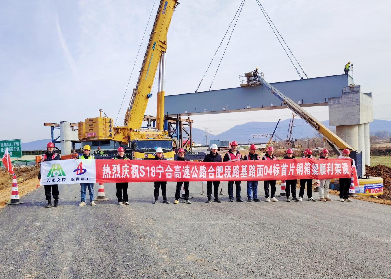 1月7日,S18寧合高速公路合肥段路基路面04標(biāo)項(xiàng)目首片鋼箱梁順利架設(shè),標(biāo)志著項(xiàng)目工程建設(shè)邁上新臺(tái)階。