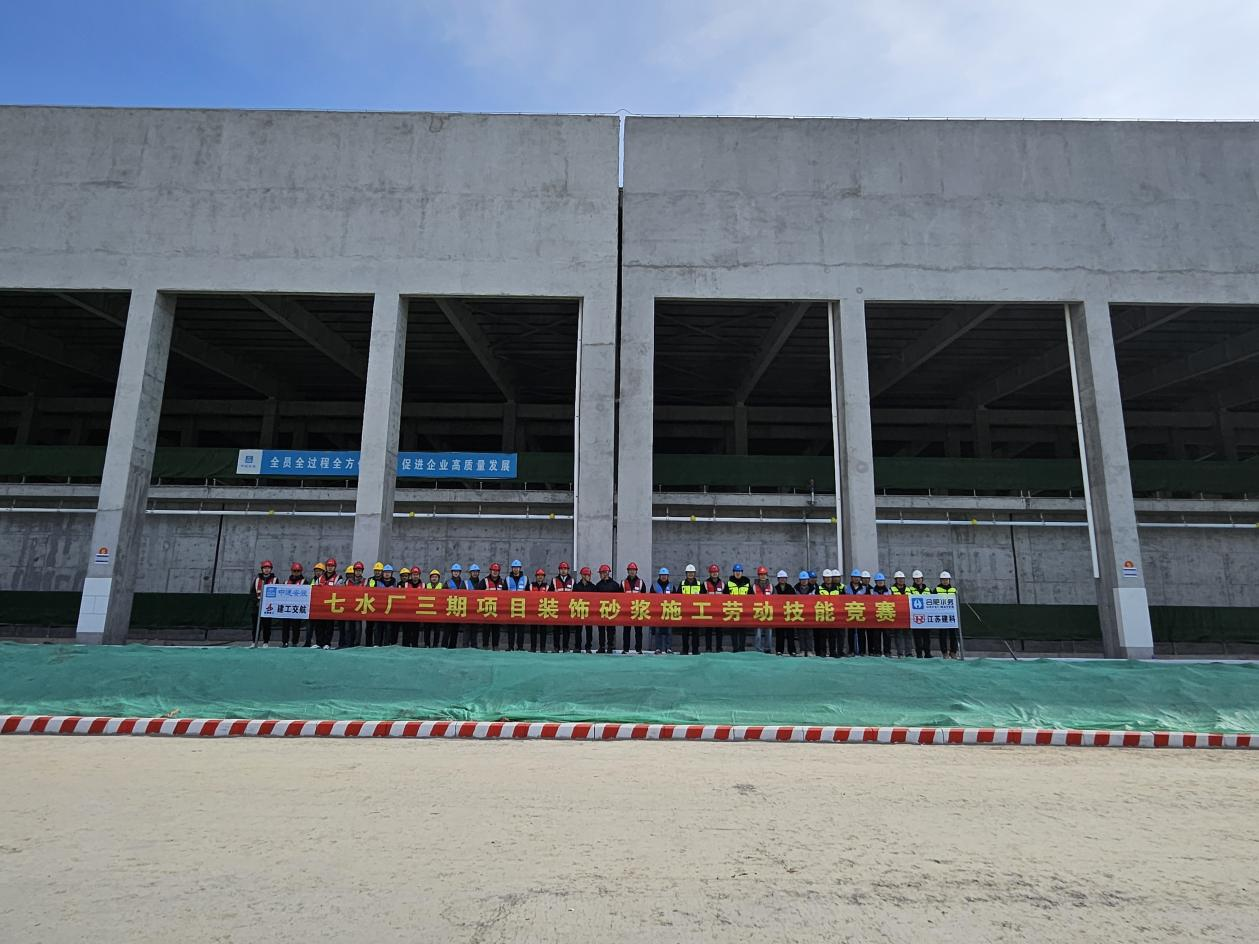 1 月 22 日上午,七水廠三期工程項(xiàng)目現(xiàn)場熱火朝天,一場由合肥水務(wù)集團(tuán)主辦、建工交航七水廠三期工程項(xiàng)目承辦的裝飾砂漿施工勞動技能競賽在此舉辦。