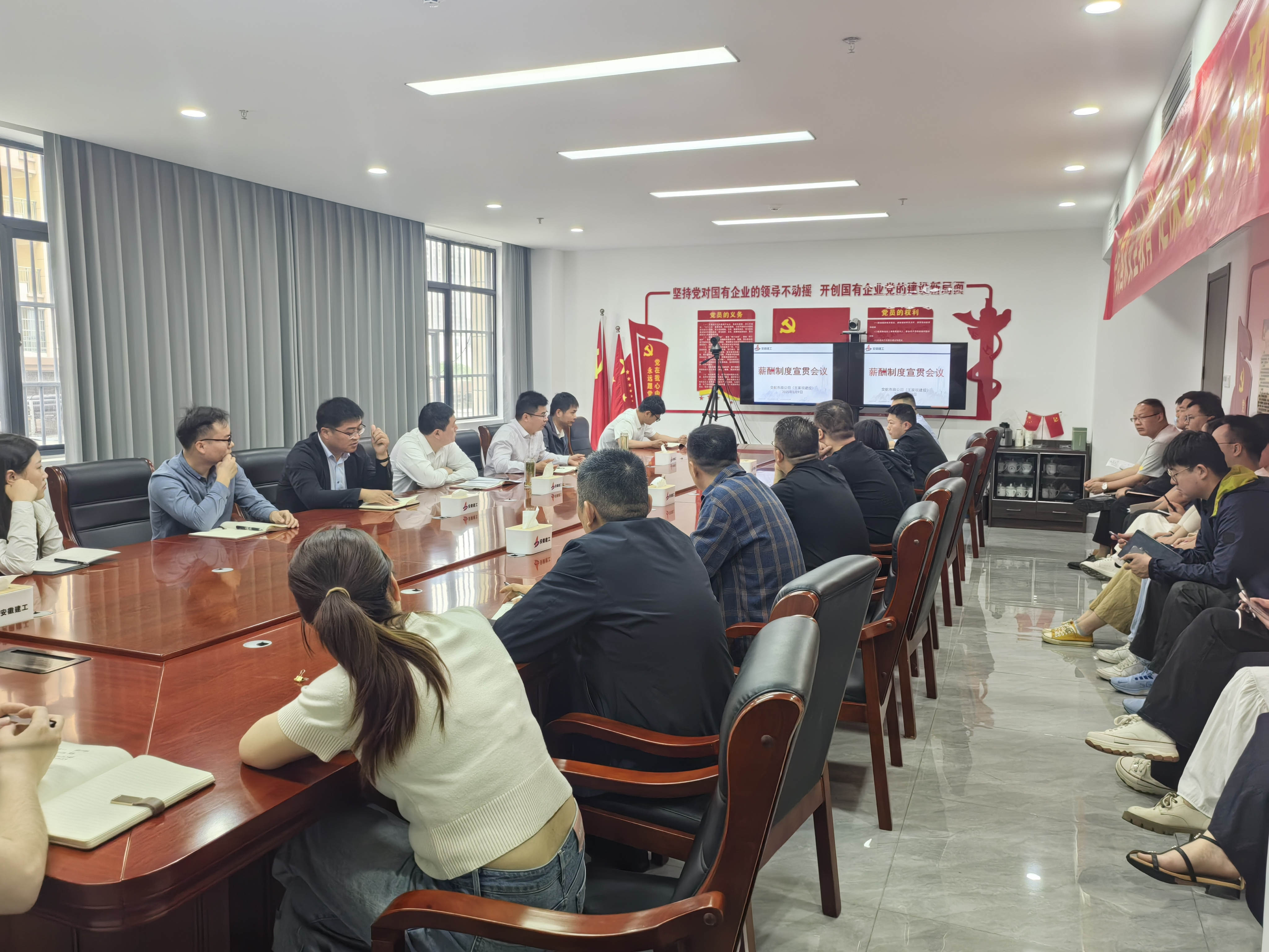 為幫助員工深入理解公司新的薪酬制度,有效發(fā)揮薪酬考核制度的激勵引導作用,建工交航機關及各子分公司組織召開專題宣貫會,對新修訂的薪酬、項目經(jīng)理薪酬及員工福利等制度進行全面解讀。